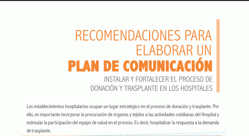 Recomendaciones para elaborar un plan de comunicación : instalar y fortalecer el proceso de donación y transplante en los hospitales / INCUCAI